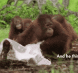 【GIF】オランウータン、おもちゃの蛇にビビる